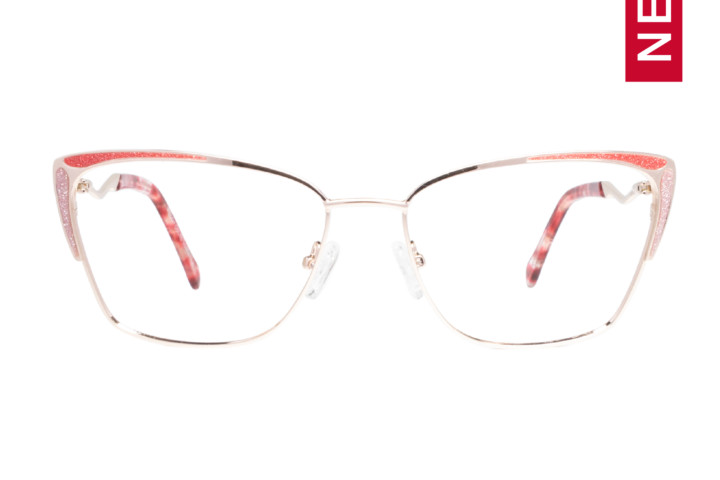 Peggy es un modelo de la línea metálica de Elizabeth Arden, de ojo rectangular / gato y detalles en epoxi con glitter. Super fino y delicado. Es una gafa liviana con patillas delgadas con flex metalico y endtip de acetato en colores vivos y florales.